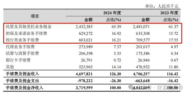 担保及承诺业务手续费为6.29亿元,占比16.92%,较2023年度的6.35亿元下降了0.95%。这一业务领域的收入也呈现小幅下降。