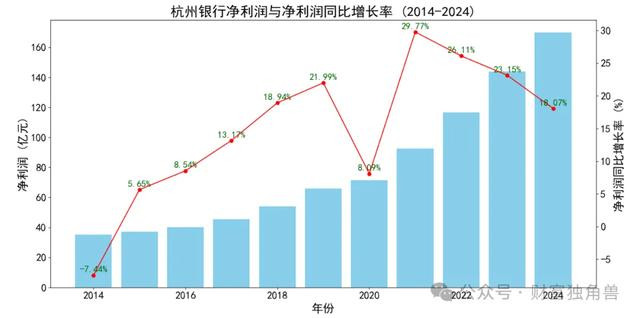 尽管杭州银行的净利润持续增长,但增速却呈放缓态势,近三年持续下降趋势显著。