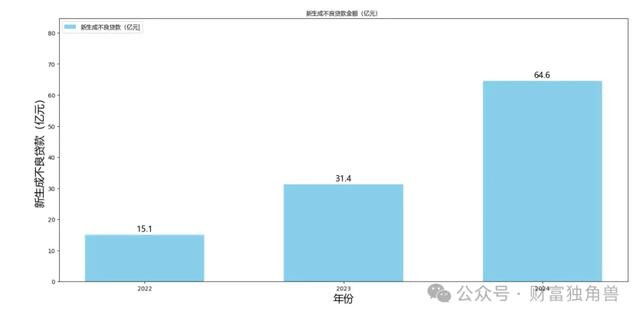 2024年,新生成不良贷款金额进一步增至64.61亿元,比2023年增长了33.26亿元,增幅为106.1%。这一增长与外部经济环境变化相关联。特别是在2023年和2024年,增幅的加大反映出资产质量指标进一步承压。